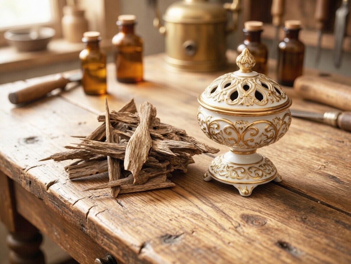 Gentle Release: Gently set a small Assam agarwood chip onto the mica plate (or use a modern electric burner set to 100-150°C).